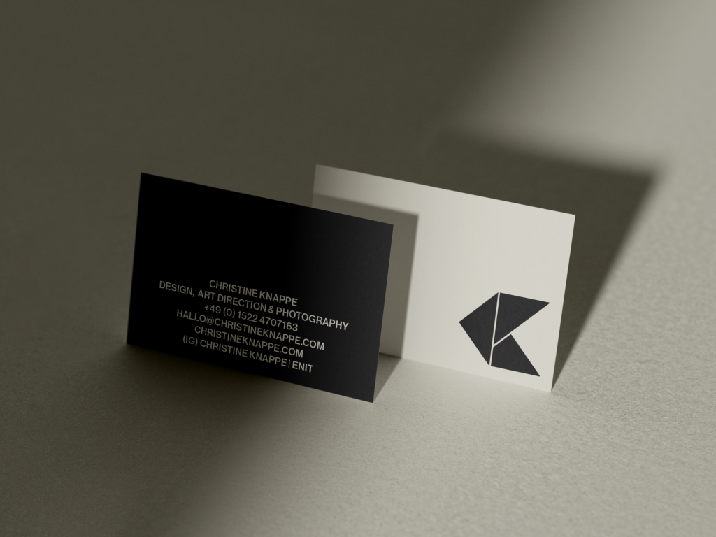 Im Rahmen dieses Projekts wurde die persönliche Corporate Identity von Christine Knappe entwickelt. Ziel war ein zeitloser, reduzierter Markenauftritt, der die gestalterische Haltung klar widerspiegelt und über alle Medien hinweg konsistent funktioniert.